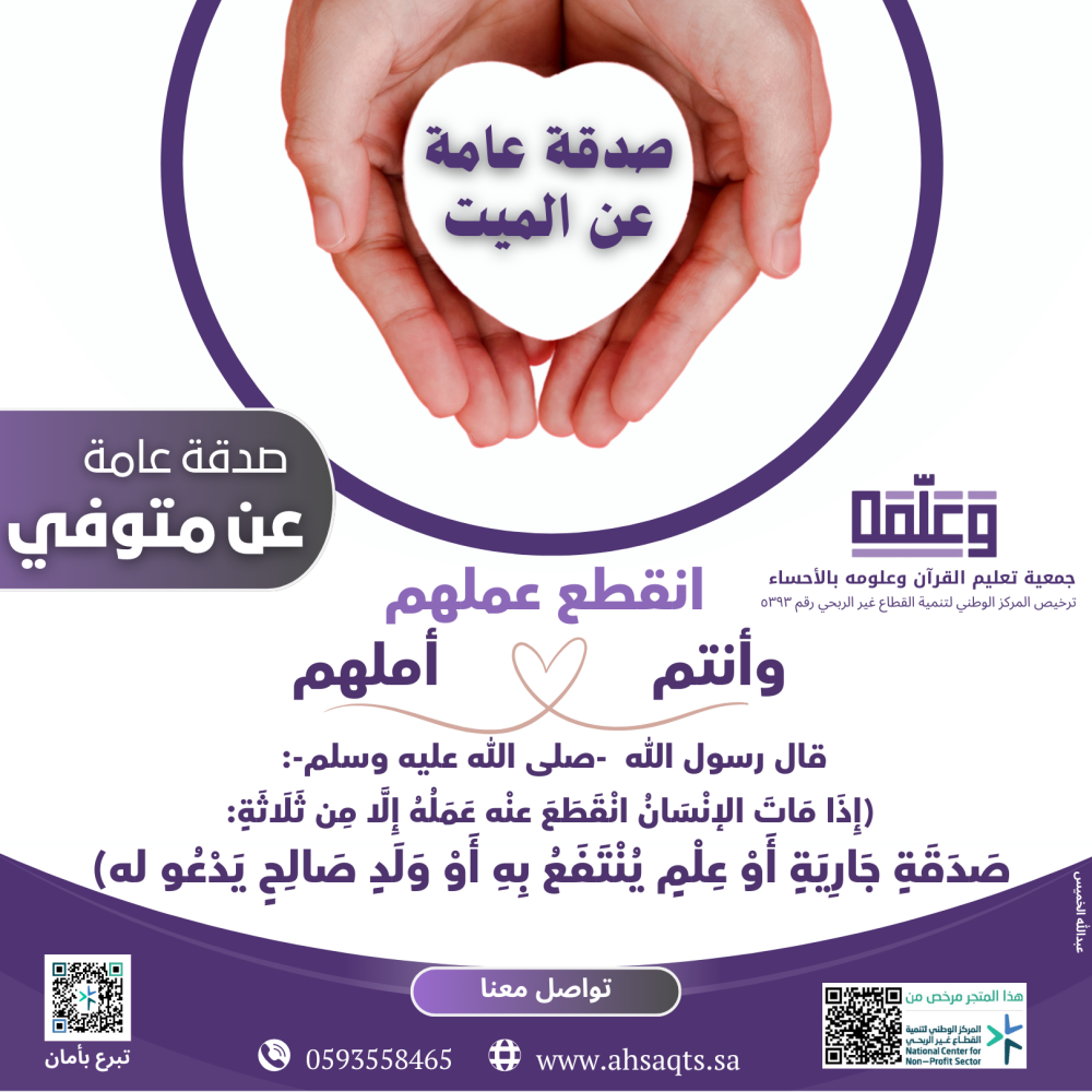 أهدي صدقتك لأحد والديك أو كلاهما أو لقريب أو صديق توفاه الله تعالى ..